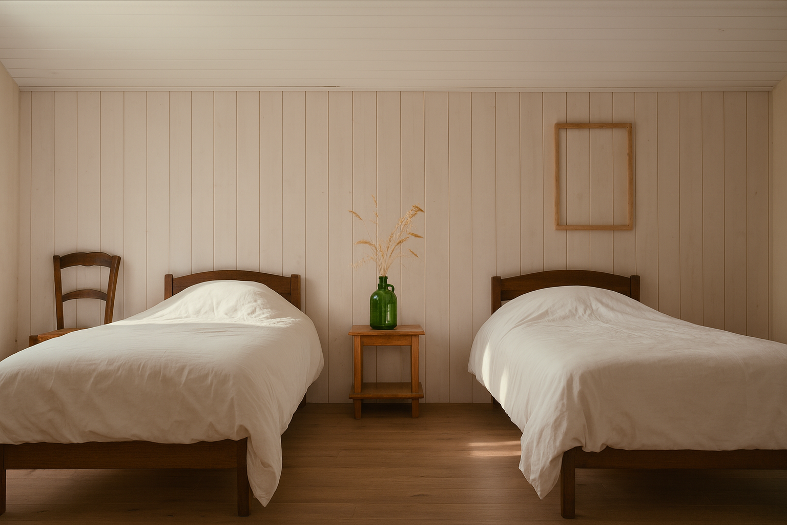 Les chambres du gîte ont été arrangées avec une attention particulière portée à la qualité de l’air, à la sensation des matières naturelles et au silence. Lors de la rénovation, chaque choix a été guidé par des questions simples : est-ce que cela permet l’harmonie, le sommeil, l’esthétisme ?