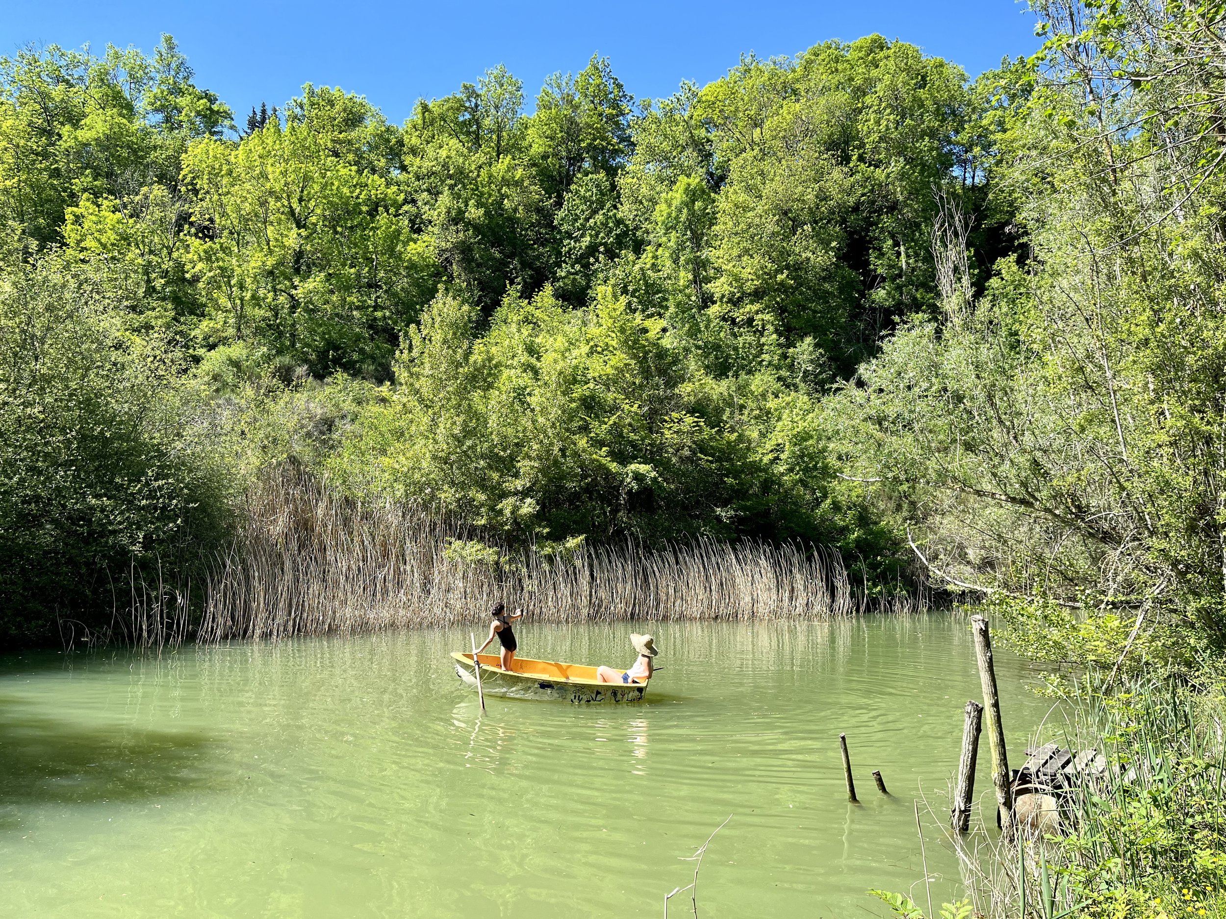 Plus bas sur le domaine, l’eau devient un élément structurant. Trois étangs, alimentés par une eau de source, rythment le paysage en apportant fraîcheur, silence et profondeur au lieu. L’un des étangs est accessible à la baignade, offrant une expérience douce et rare : se plonger dans une eau non traitée sans aménagement artificiel.