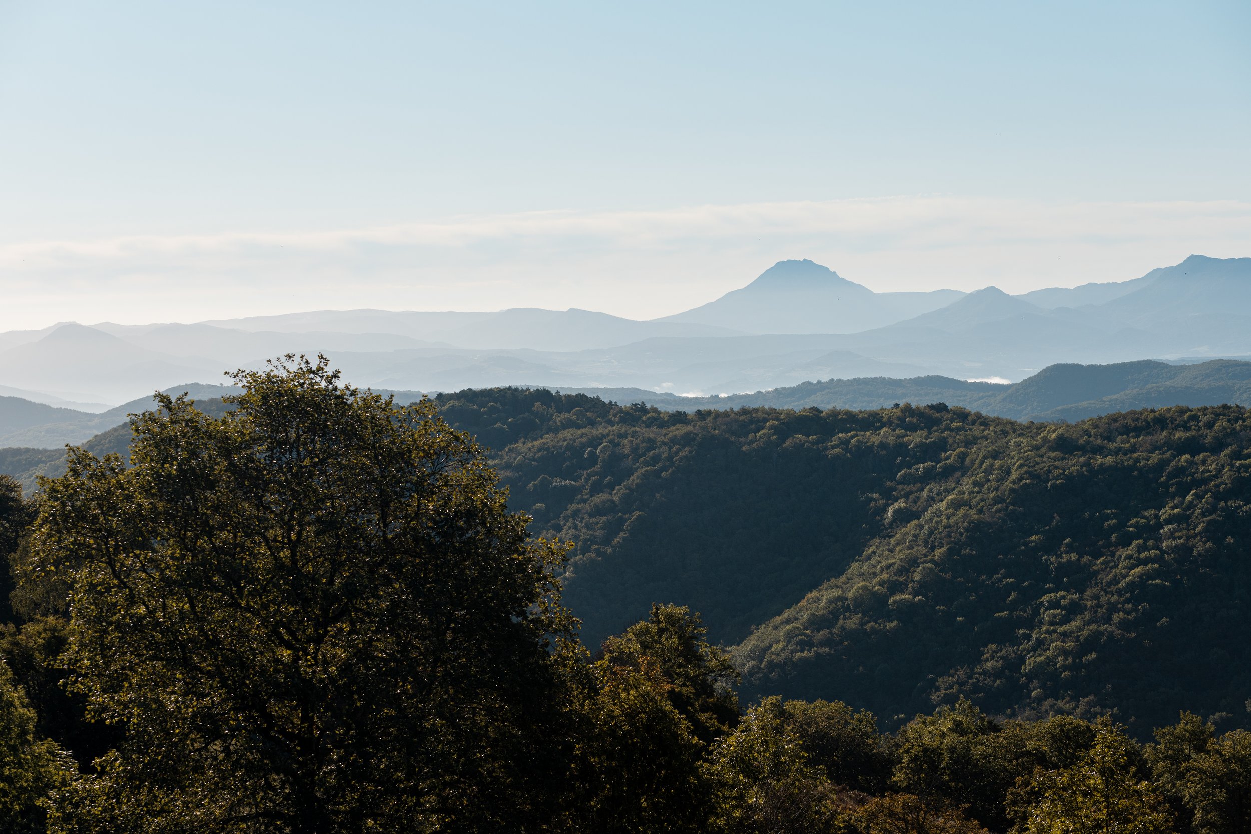 Le domaine comprend également une forêt de dix hectares, accessible directement depuis le gîte. Cette forêt offre un espace vaste, protecteur, propice à la marche, à l’exploration lente et aux pratiques en lien avec la nature. Certains sentiers mènent aux sommets environnants et d’autres sentiers restent à tracer. Comme dans la vie, ici les chemins se dessinent avec le temps, au gré des passages, des saisons et des usages.